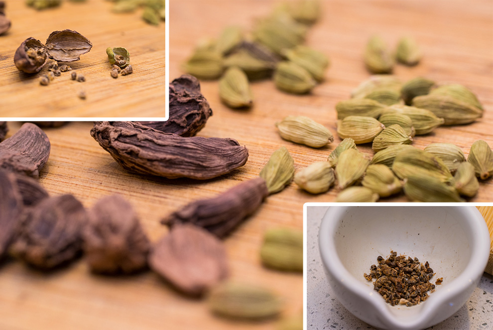 Combine the Pisco, lime juice, cardamom simple syrup in a martini shaker.