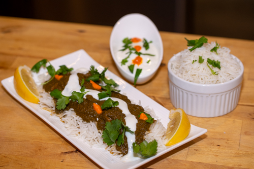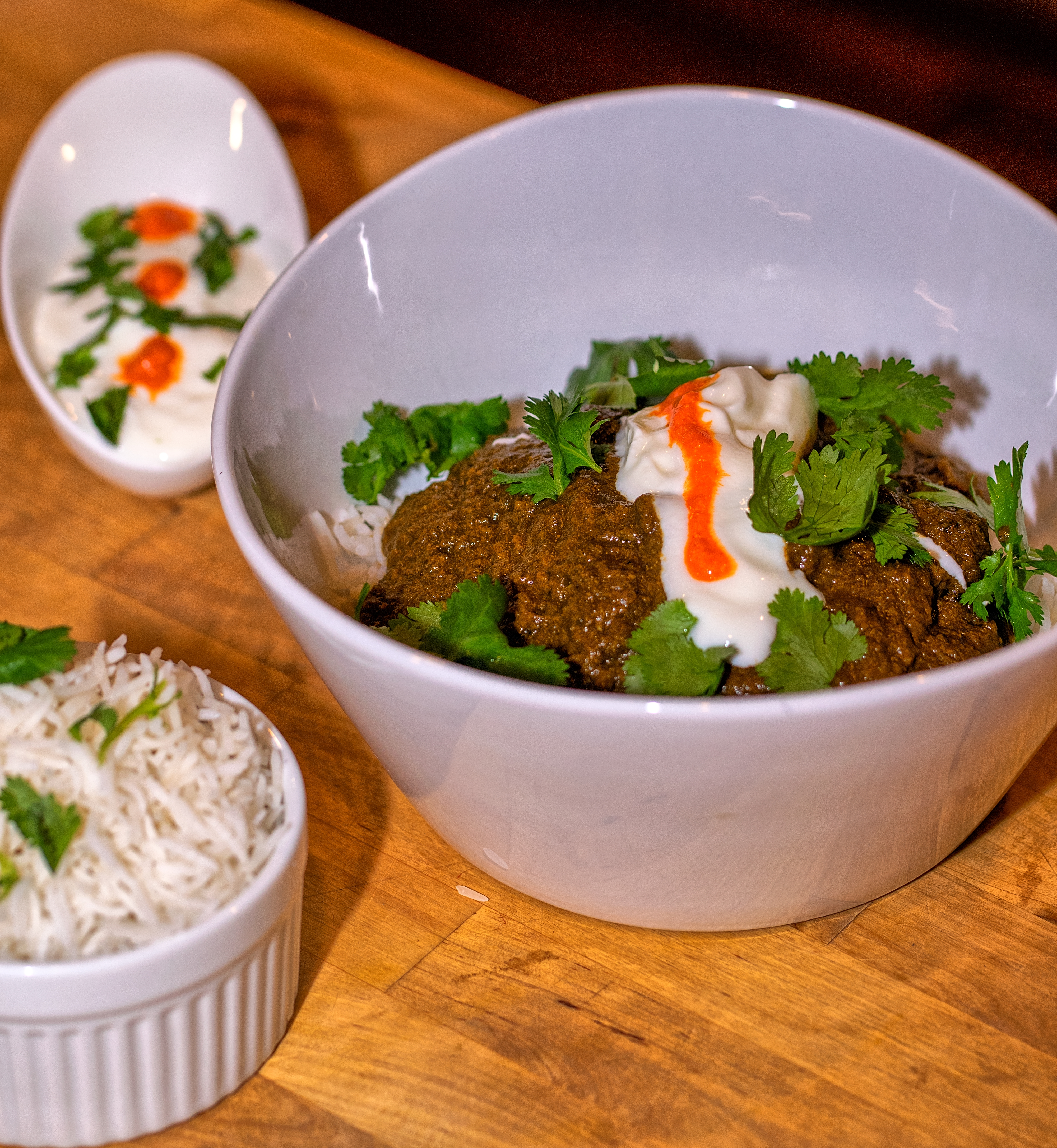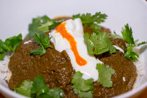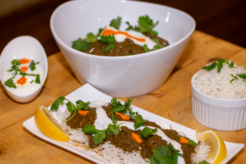 This is Kerry and my’s favorite Indian dish. It’s full of savory flavor and you can make it as mild or spicy as you would like. The thick sauce is a great way to stretch some meat into several meals (I’ve made it with as little as 1/4 pound). It’s also the perfect recipe to use up that fading spinach in the fridge ASAP.