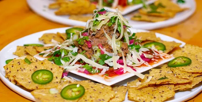 I started with a bed of fresh salsa and put a large scoop of the beans on top. Then I topped it with chopped green onions, mexican pickled onions, fresh cilantro, cheddar cheese, smoking carrot hot sauce and jalapeno slices. It was delicious!