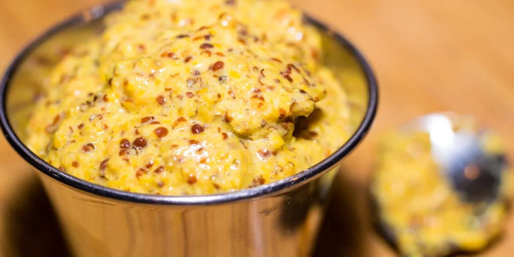 This homemade whole grain mustard is a nice balance of acid, heat and depth. It is by no means over the top in it’s heat. I would say it’s about on par with many ‘spicy’ store bought German mustards. I love this recipe for it’s simplicity of method and it’s traditional flavor. I have lots of specialty mustards, but this one is my go to.