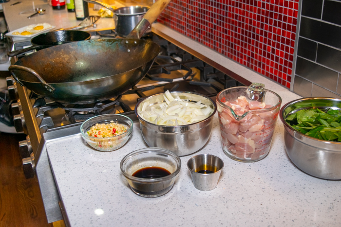 Now we are getting ready to cook. As I said, this is one recipe where I like all the ingredients laid out and ready to go. This dish cooks fast and at high heat… no time for letting it sit for a second while you go and grab something.